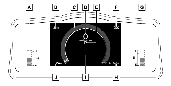 - タコメーター/アナログスピードメーターマルチインフォメーションディスプレイのカスタマイズ画面で、表示を変更できます。タコメーター: