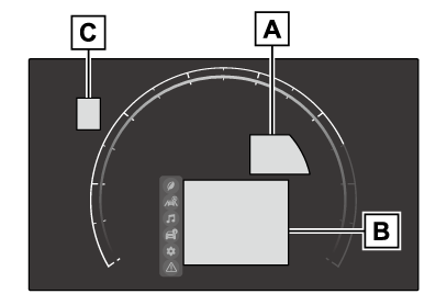 - コンテンツ表示エリアメニューアイコンを選択し、走行に関するさまざまな情報を表示したり、車両設定を変更することができます。また、状況に応じて注意喚起やアドバイスなどを割り込み表示します。
