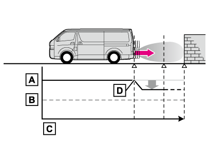 PKSB(パーキングサポートブレーキ)は、完全に車両を停止させるシステムではありません。また、車両を停止させることができたとしても、ブレーキ制御は約2秒で解除されるため、すぐにブレーキペダルを踏んでください。