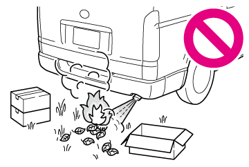 次のことを必ずお守りください。お守りいただかないと、高温になった排気管・排気ガスによりやけどなどの重大な傷害を受けたり、火災などが発生するおそれがあり危険です。