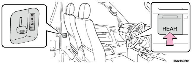 リヤヒーターを使用するにはファン調整レバーを上(増)か下(減)に操作する送風を止めるときは、レバーをOFFの位置にします。注意バッテリーあがりを防ぐためにエンジン停止中は、必要以上にリヤヒーターを使用しないでください。