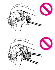 ケーブル等を過度に締め付け過ぎないでください。車両の損傷につながるおそれがあります。