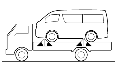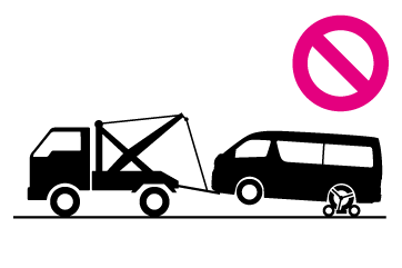 車両の損傷を防ぐために図のようなレッカー車ではけん引しないでください。