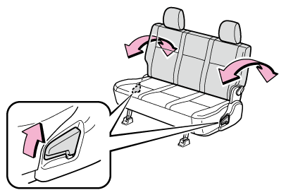 - 左右いずれかのロック解除レバーを引いて、シート脚部のロックを解除し、セカンドシート後部を持ち上げる
