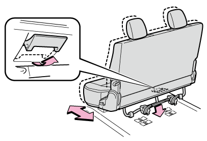 - スライドレバーを引いてシートを前後に移動させ、シートをフロアに押し付けてロックするシートが確実に固定されたことを確認してください。
