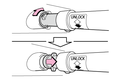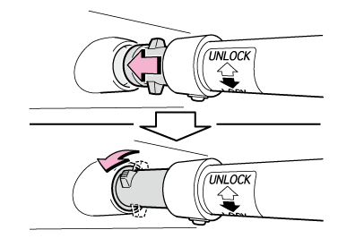 セパレーターバーのカーブが車両後方を向き、伸縮部が運転席側になるように取り付けてください。