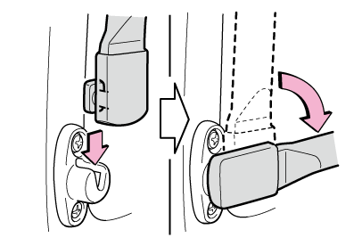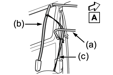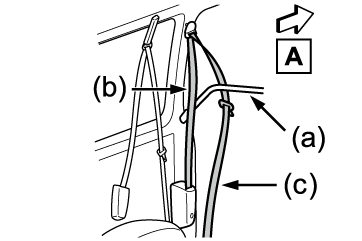 セパレーターバー(Dタイプ)を取り付けるときは、次のようにセパレーターバー(a)をシートベルト(b)と(c)のあいだにセットしてください。