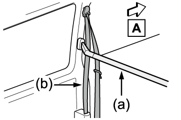 セパレーターバー(Bタイプ)を取り付けるときは、次のようにセパレーターバー(a)をシートベルト(b)のあいだにセットしてください。