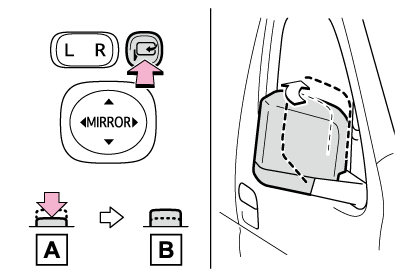 寒冷時にアウターミラーが凍結していると、アウターミラーの格納・復帰や鏡面の調整ができない場合があります。アウターミラーに付着している氷や雪などを取り除いてください。