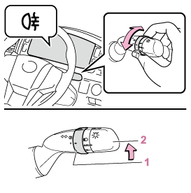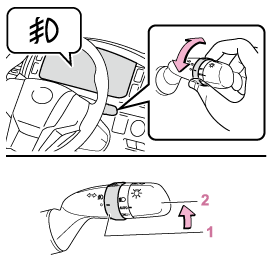 の位置までもどります。再度操作すると、リヤフォグランプのみ消灯します。