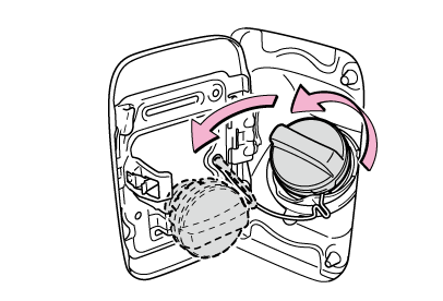 すぐに開けると、気温が高いときなどに、給油口から燃料が噴き出るおそれがあります。