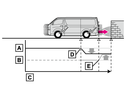 PKSB(パーキングサポートブレーキ)は、完全に車両を停止させるシステムではありません。また、車両を停止させることができたとしても、ブレーキ制御は約2秒で解除されるため、すぐにブレーキペダルを踏んでください。
