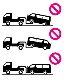 車両の損傷を防ぐために図のようなレッカー車ではけん引しないでください。
