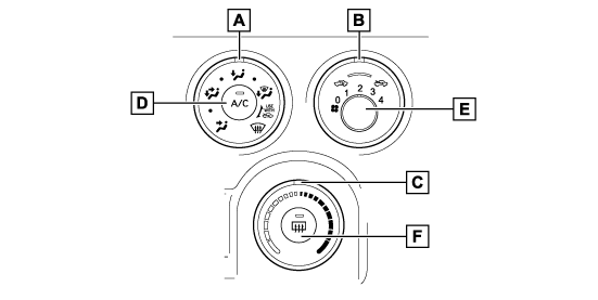 - 外気導入/内気循環切りかえダイヤル