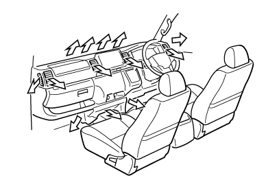車室内の湿度が高いときはガラスが曇りやすくなります。その場合は、冷房・除湿スイッチをONにすると、吹き出し口から除湿された風が出るため、効果的に曇りを取ることができます。
