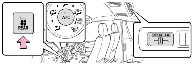 A/C スイッチが OFF のときは、リヤクーラーの冷房・除湿機能が作動せず、送風のみとなります。