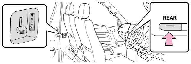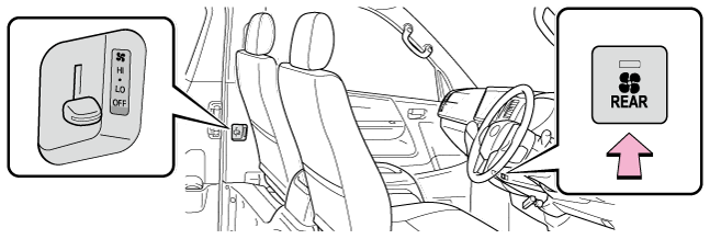 リヤヒーターを使用するにはファン調整レバーを上(増)か下(減)に操作する送風を止めるときは、レバーをOFFの位置にします。注意バッテリーあがりを防ぐためにエンジン停止中は、必要以上にリヤヒーターを使用しないでください。