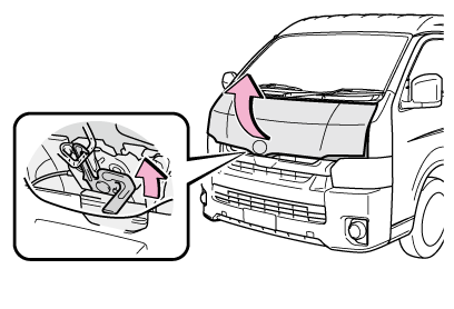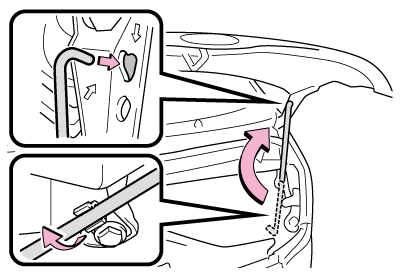 ボンネットステーをステー穴から取りはずし、クリップに正しくもどしてください。