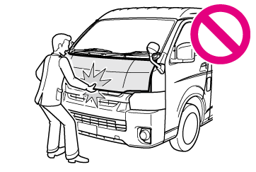 ボンネットを閉めるときは、体重をかけるなどして強く押さないでください。ボンネットがへこむおそれがあります。