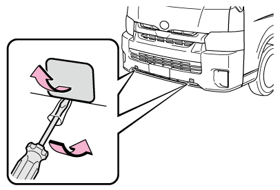 他車にけん引してもらうときは、けん引フックを取り付ける必要があります。手順に従って取り付けてください。