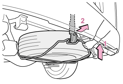 スペアタイヤは、ジャッキアップする前に格納具から取りはずしておく