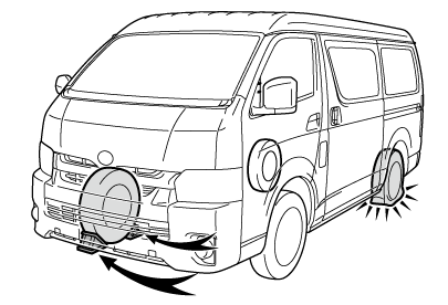 ボデーとスペアタイヤとのあいだに、指などを挟まないように注意してください。