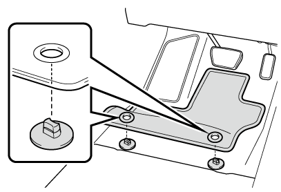 1. 固定フック(クリップ)にフロアマット取り付け穴をはめ込む