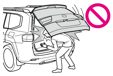 不意にバックドアが開いたり、閉めるときに手・頭・首などを挟んだりするおそれがあります。