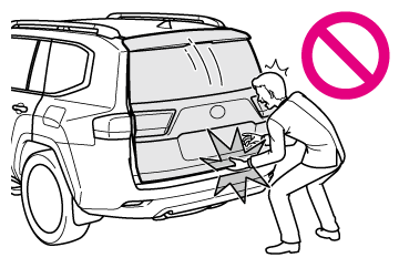バックドアイージークローザーの作動中は無理な力をかけないでください。無理な力をかけると、バックドアイージークローザーの故障の原因になります。