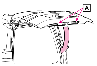 バックドアダンパーステー(パワーバックドア非装着車)(→ダンパーステーについて)、またはスピンドルユニット(パワーバックドア装着車)(→スピンドルユニットについて)を持ってバックドアを閉めたり、ぶら下がったりしないでください。手を挟んだり、バックドアダンパーステー(パワーバックドア非装着車)またはスピンドルユニット(パワーバックドア装着車)が破損したりして、思わぬ事故につながるおそれがあります。