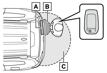 電子キーが作動範囲内にあるとき(→作動範囲(電子キーの検知エリア))