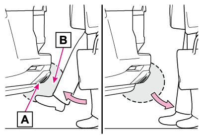 足をリヤバンパー運転席側の下部に近付けて離す動作をしたとき(手やひじ、ひざなどでも作動します)