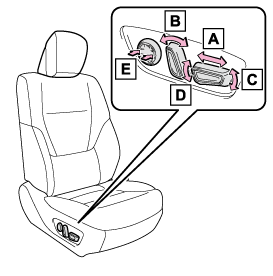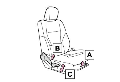レバー操作もしくはスイッチ操作により、シートの前後・上下位置などの調整ができます。正しい運転姿勢がとれるよう調整してください。(→正しい運転姿勢をとるには)