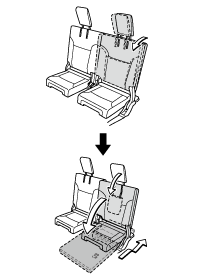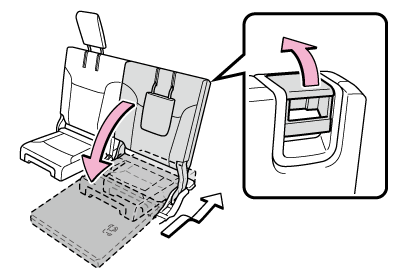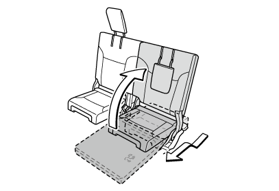 中央席の前倒しレバーをいっぱいまで引き上げると、中央席のみを前倒しすることができます。長い荷物を積む場合に便利です。