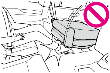 背もたれを必要以上に倒さないでください。事故のときに体がシートベルトの下にもぐり、腹部などに強い圧迫を受けたり、肩部ベルトが首にかかるなどして、重大な傷害におよぶか、最悪の場合死亡につながるおそれがあります。