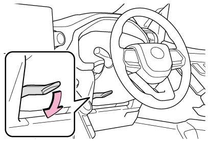 エンジンスイッチのモード切りかえ・運転席シートベルトの脱着に連動して、ハンドルとシートが動きます。(→運転席への乗り降りをしやすくするには(パワーイージーアクセスシステム))