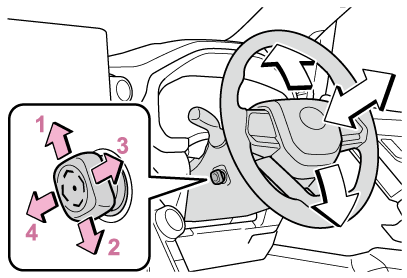 お好みのハンドル位置をドライビングポジションメモリーに登録すると、自動で調整されます。(→ドライビングポジションをポジションメモリーボタンに登録する/呼び出すには)