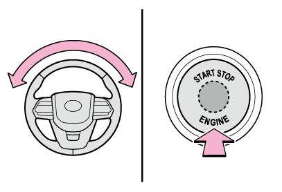 エンジンスイッチをOFFにしたあとにドアを開閉すると、ステアリングロック機能によりハンドルが固定されます。エンジンスイッチを操作すると、ステアリングロックは自動で解除されます。