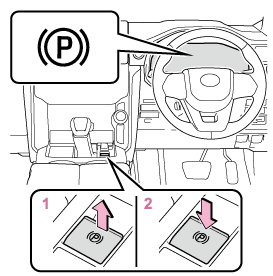 - スイッチを押し、パーキングブレーキを解除する