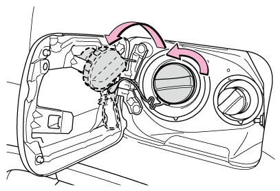 すぐに開けると、気温が高いときなどに、給油口から燃料が噴き出るおそれがあります。