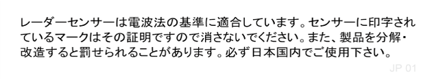 お守りいただかないと、レーダーが正常に作動せず、思わぬ事故につながり、重大な傷害におよぶか、最悪の場合死亡につながるおそれがあります。