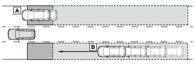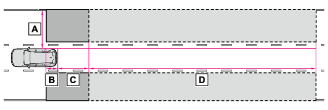 - ドアミラーインジケータードアミラーの死角領域に車両を検知したとき、または後方からその死角領域に急速に接近してくる車両を検知したときは、検知した側のドアミラーインジケーター(→表示灯一覧)が点灯します。検知した側に方向指示レバーを操作している場合は、ドアミラーインジケーターが点滅し、ブザーが鳴ります。