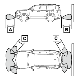クリアランスソナーは、車両と壁などの静止物とのおおよその距離を超音波センサーによって検知して、マルチメディアディスプレイの距離表示とブザー音、音声案内で運転者にお知らせします。