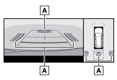 車両後方エリアに歩行者がいる場合や、車両後方に向かって歩行者が接近してくるのをリヤカメラが検知した場合、下記のようにブザーとマルチメディアディスプレイの歩行者検知表示で運転者に注意を促します。
