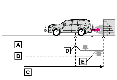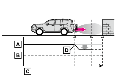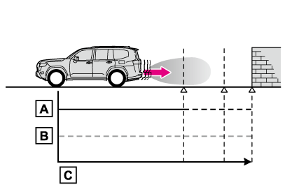 PKSB(パーキングサポートブレーキ)は、完全に車両を停止させるシステムではありません。また、車両を停止させることができたとしても、ブレーキ制御は約2秒で解除されるため、すぐにブレーキペダルを踏んでください。