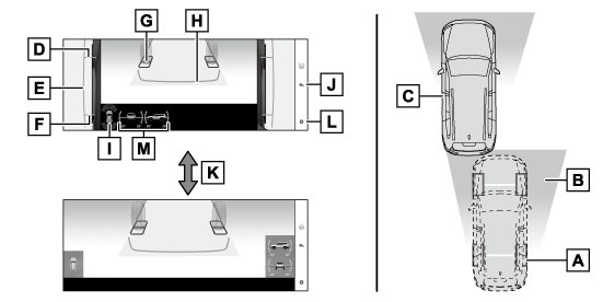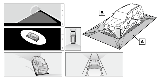 マルチテレインモニターは、車両周辺の状況確認を補助するシステムです。オフロード走行時の状況把握や車庫入れ時の障害物の確認など、幅広い場面で運転者の状況判断を支援します。