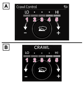 クロールコントロールが解除されると、クロールコントロール作動表示灯、スリップ表示灯とターンアシスト表示灯(ターンアシスト機能使用時のみ)が消灯し、マルチインフォメーションディスプレイにクロールコントロールが解除されたことを示すメッセージが数秒間表示されます。