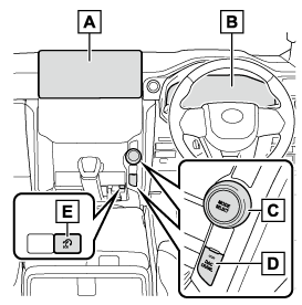ターンアシスト機能作動中にターンアシストスイッチを押します。スイッチを押すとターンアシスト表示灯が消灯し、マルチインフォメーションディスプレイにターンアシスト機能が解除されたことを示すメッセージが数秒間表示されます。