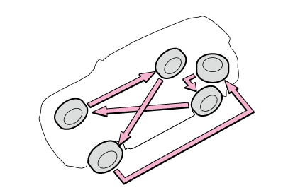 タイヤの摩耗を均等にし寿命をのばすために、タイヤローテーション(タイヤ位置交換)を5,000kmごとに行ってください。