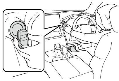 ここで説明しているエンジンの始動方法は一時的な処置です。電池が切れたときは、ただちに電池の交換をおすすめします。(→電子キーの電池交換)
